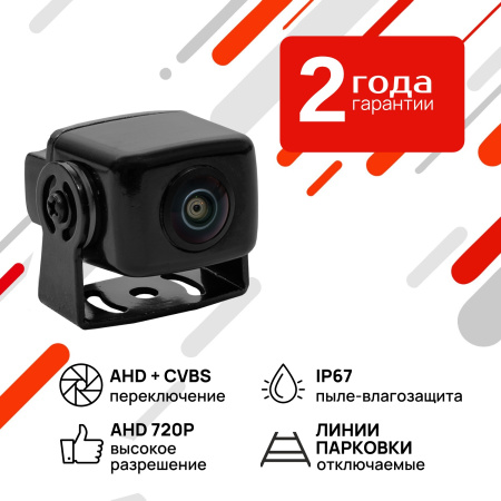 Камера заднего вида для парковки позволяет водителю видеть окружающую обстановку позади автомобиля без искажений и днём, и ночью. Кроме того, камера заднего вида проста в установке и удобна в работе. Она может работать как с обычными мониторами CVBS, так и с AHD мониторами. По умолчанию камера имеет парковочные линии, которые можно отключить.