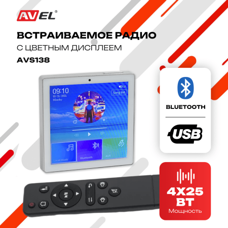 Встраиваемый Bluetooth усилитель с радио AVS138