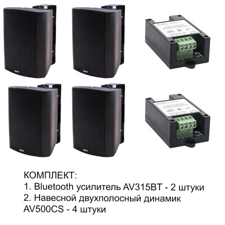Комплект из четырех навесных динамиков и двух усилителей 2xAV315BT + 4xAV500CS