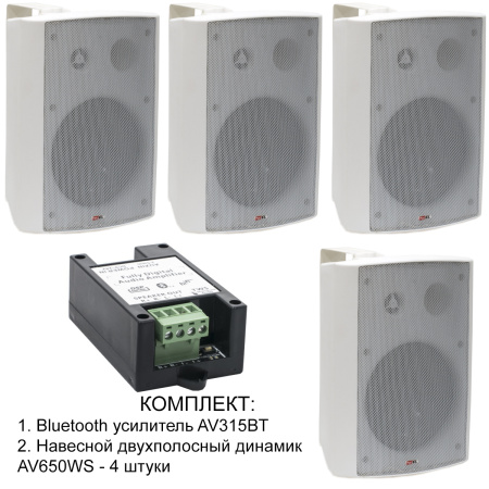 Комплект из четырех навесных динамиков и усилителя AV315BT + 4xAV650WS