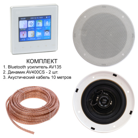 Комплект из двух влагозащищенных динамиков, усилителя и акустического кабеля AVS135 + 2xAV400CS + AV10AC