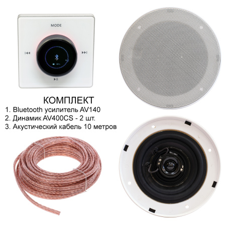 Комплект из двух влагозащищенных динамиков, усилителя и акустического кабеля AVS140 + 2xAV400CS + AV10AC